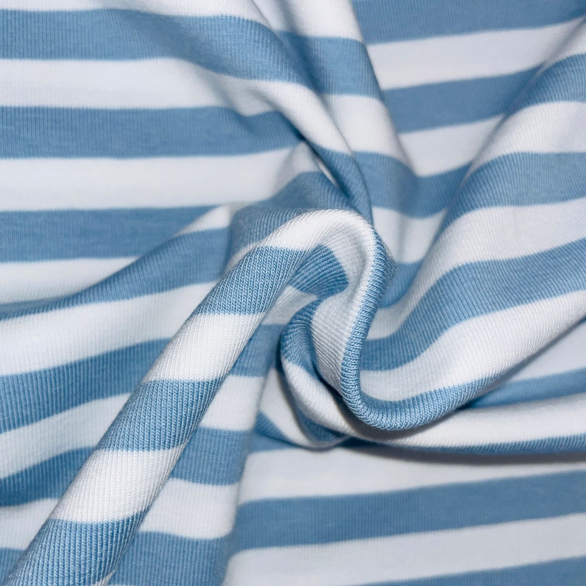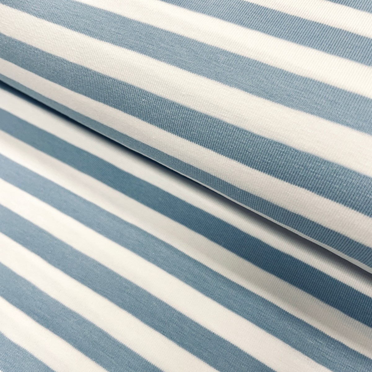 Jersey di Cotone con Righe larghe 1cm, Bianco / Celeste